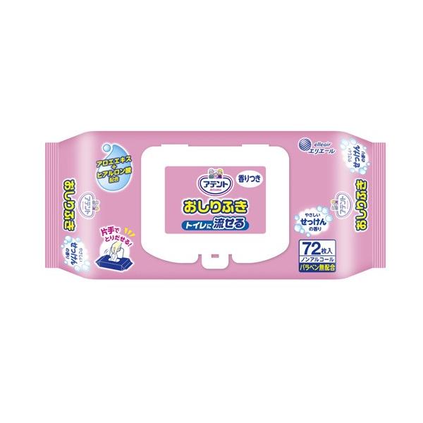 [直送品] アテント 流せるおしりふき せっけんの香り 1袋(72枚入)[直送品以外と同梱不可]W875327