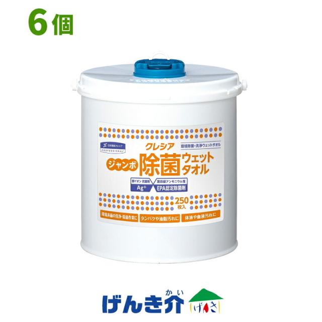 ジャンボ 除菌ウェットタオル 1ケース (250枚入×6個) 本体ケース付き 日本製紙クレシア