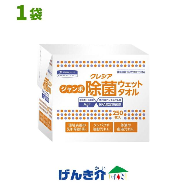 ジャンボ除菌ウェットタオル 詰め替え用 1袋 (250枚入×1個) 詰替用 ケースなし 日本製紙クレシア