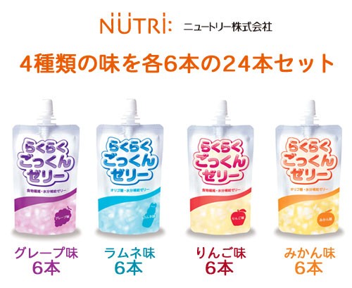 介護食 ゼリー らくらくごっくんゼリー アソートBOX 150g×6袋×4種 グレープ味、りんご味、ラムネ味、みかん味 水分補給 ニュートリー株式会社