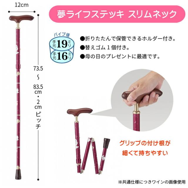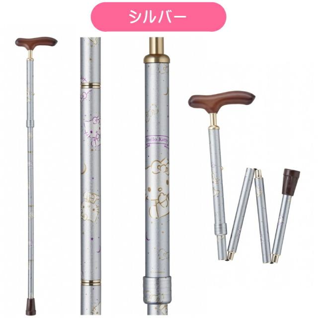 夢ライフステッキ スリムネック ハローキティ シルバー 伸縮 73.5〜83.5cm 290g 折りたたんで保管できるホルダー付き 杖 折りたたみ アルミ 母の日 W10102