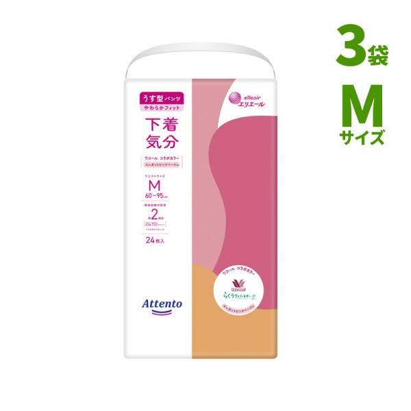 [直送品] エリエール アテント うす型パンツ 下着気分 エレガントピンクベージュ パンツタイプ Mサイズ 3袋 (1袋24枚入り) W875755 [直送品以外と同梱不可]