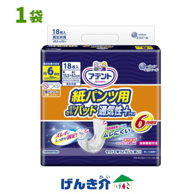 [直送品] 大王製紙 アテント 紙パンツ用 夜1枚安心パッド 6回吸収 1袋(18枚入) さらさら 通気性プラス W875650