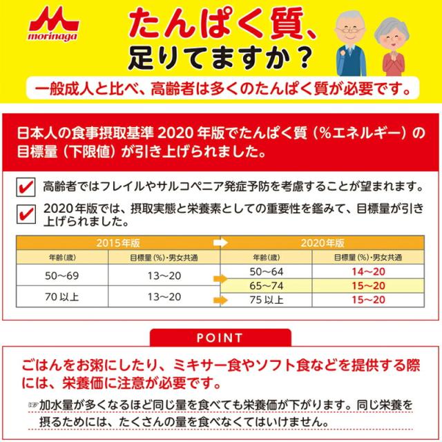 リン・カリウム含量を低減しているので、リン・カリウム摂取量に配慮する必要がある方も、たんぱく質を効率的に補給することができます。
