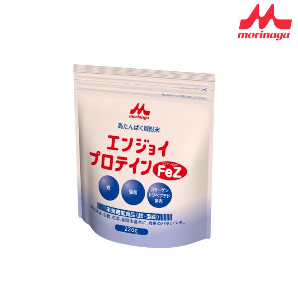・エンジョイプロテインFeZは、摂取が不足しがちな鉄・亜鉛・銅およびビタミンA・ビタミンB1、B2、B6、B12を配合した消化吸収性の良い高たんぱく質粉末です。