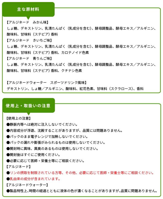 アイソカル・アルジネード 青りんご味・きいちご味・みかん味・ウォーター