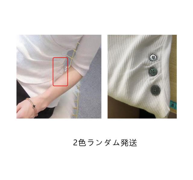 | VネックニットTシャツ♪ カシュクールデザインがレディーな印象です。 サイドのボタンがさり気ないアクセントのリブニットトップス。 深堀Vネックでデコルテを美しく見せ、心地良いフィット感のスリムラインでウエストを細見せ! さらりとした心地良い肌触りと伸縮性のある生地で着心地抜群◎ 春から秋までのロングシーズン、オン/オフ問わず活躍します。 | |