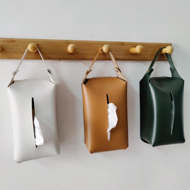 ティッシュケース 車 ティッシュカバー 2way 壁掛け 北欧 おしゃれ 吊り下げ ティッシュカバー ペーパー 車用 ボックスティッシュ 収納 車用品 縦型 革 収納 箱ティッシュ 対応 ストラップ ブラウン ホワイト グリーン ブルー イエロー 送料無料