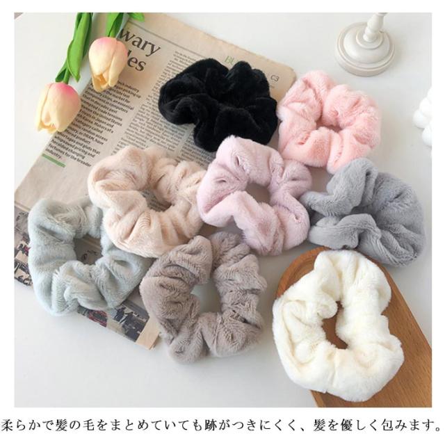 送料無料 8点セット シュシュ ヘアゴム 秋冬 フェイクファー シンプル 柔らかい レディース ヘアアクセサリー 大人っぽい かわいい ポンポン おしゃれ エコファー カジュアル