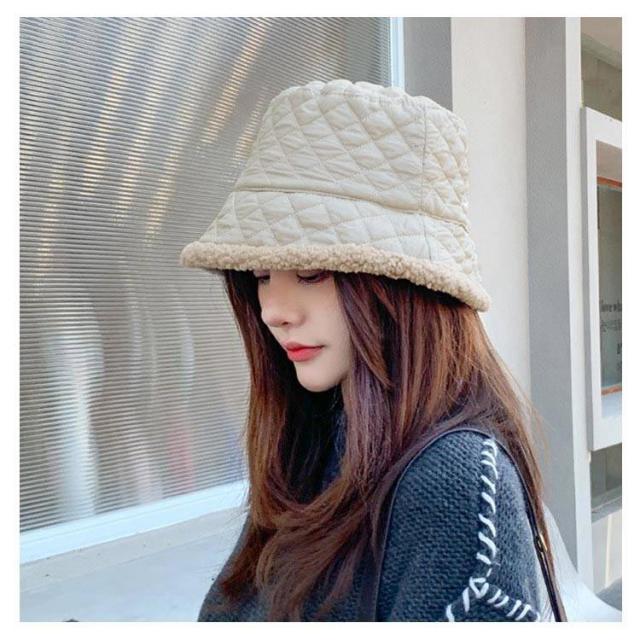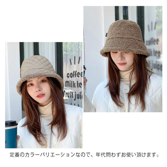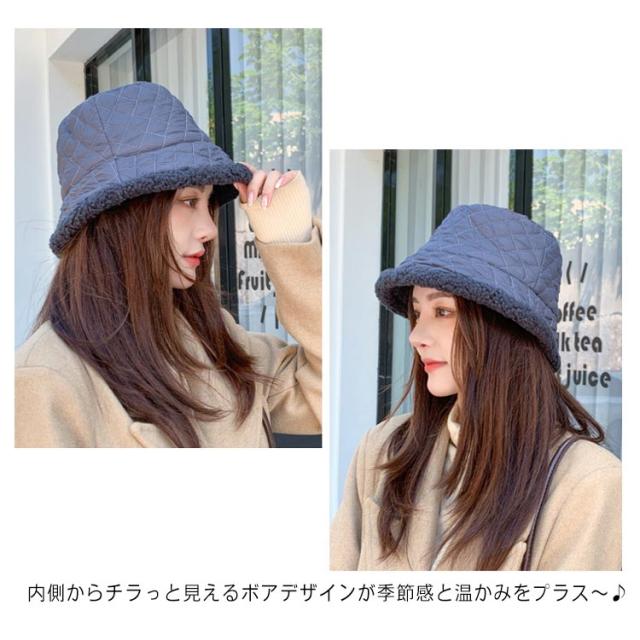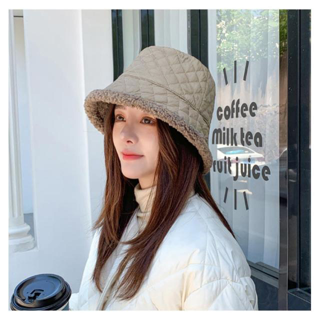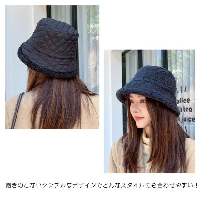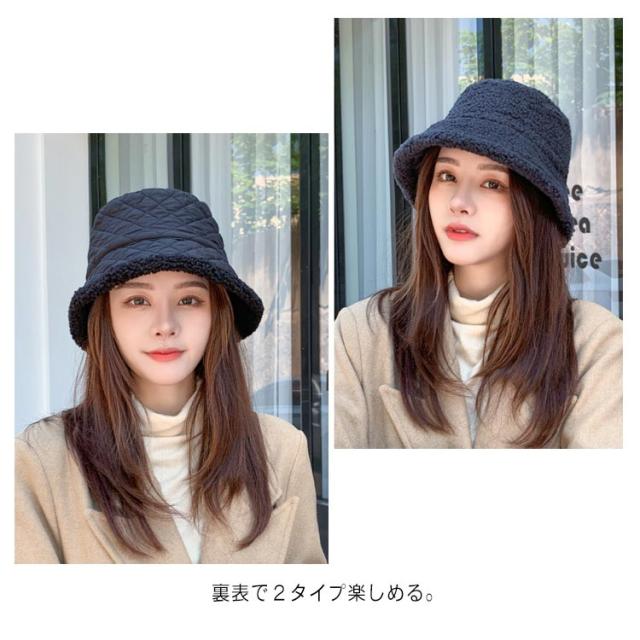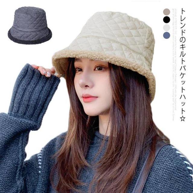 キルティング ボア バケットハット レディース 秋冬 暖か 帽子 ハット 韓国風 紫外線 UVケア 10代 20代 30代 40代 50代