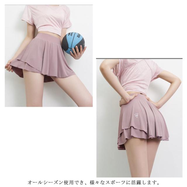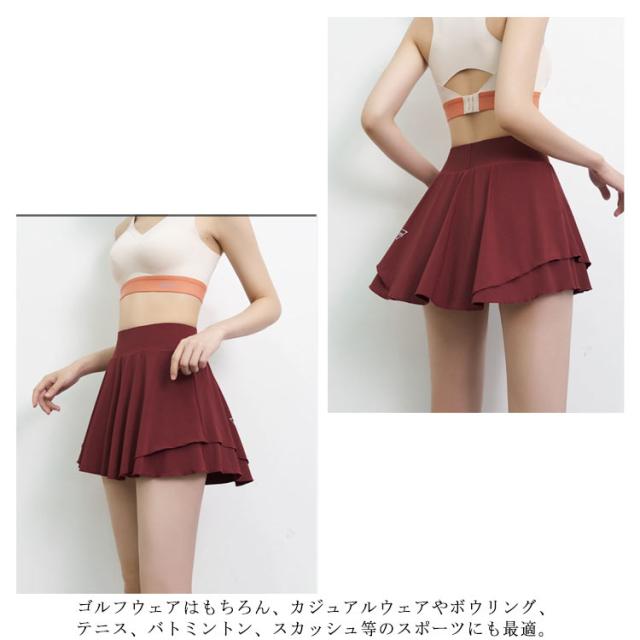 ゴルフウェア レディース 軽量 ゴルフスカート フレアスカート 無地 ゴルフ インナーパンツ付き ウエスト 裏地付き テニススカート おしゃれ 黒 グレー ピンク