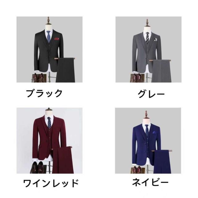 スーツ メンズ ビジネススーツ 3ピーススーツ コート 折り襟 スリム ボタン付 男性用 紳士服 大きいスーツ セットアップ ファッション オシャレ フォーマル 結婚式 ビジネス