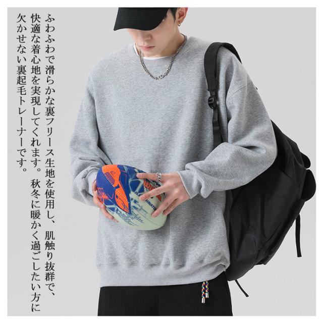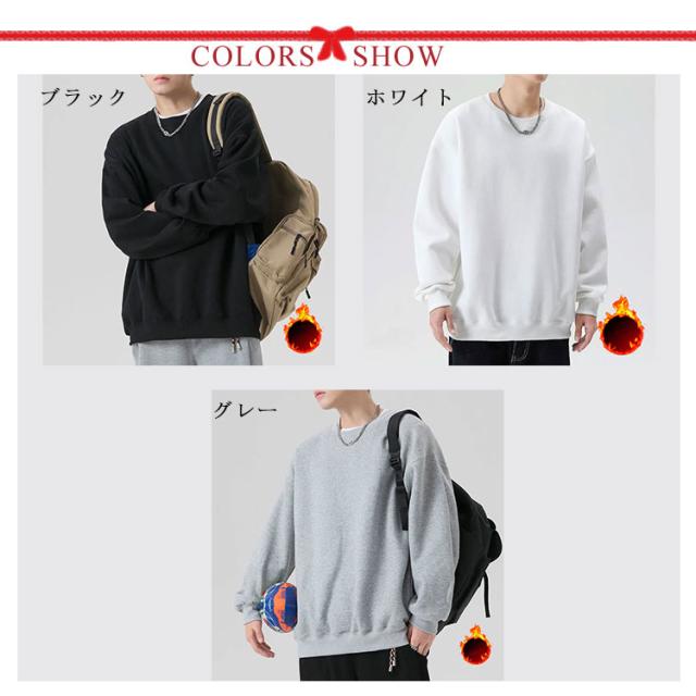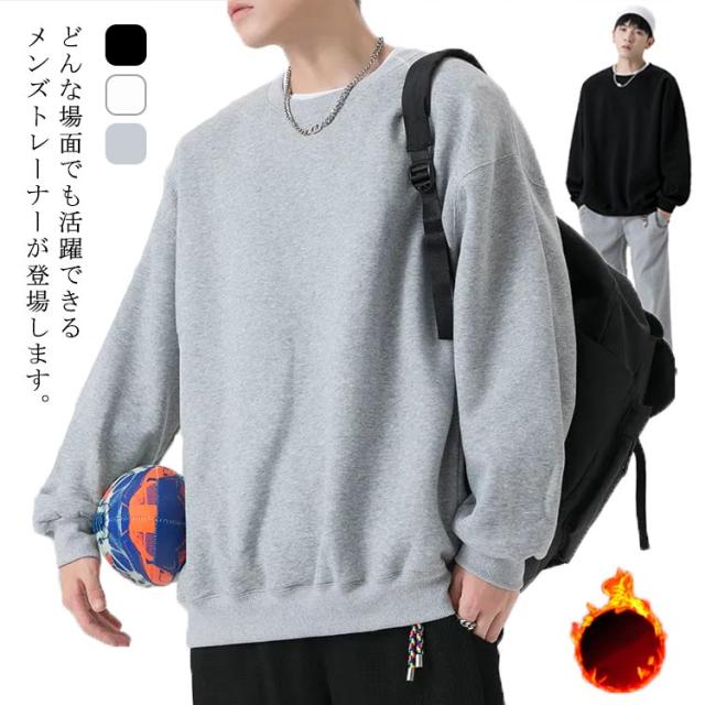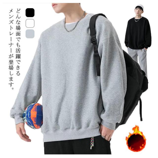 無地 トレーナー メンズ 裏起毛 カジュアル 大きいサイズ 秋冬 春 クルーネック パーカー スウェット ゆったり シンプル 長袖 プルオーバー トップス 白 黒 グレー 送料無料