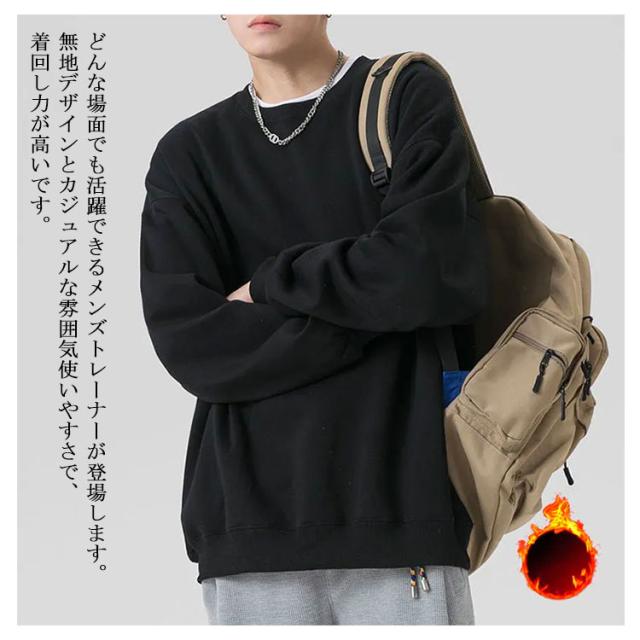 | どんな場面でも活躍できるメンズトレーナーが登場します。無地デザインとカジュアルな雰囲気使いやすさで、着回し力が高いです。 ゆったりとしたシルエットだから、インナーにシャツなどを重ね着にしても窮屈感がありません。また、小さめサイズから大きいサイズまで揃えている長袖パーカーは色んな体型のお客様に合います。 ふわふわで滑らかな裏フリース生地を使用し、肌触り抜群で、快適な着心地を実現してくれます。秋冬に暖かく過ごしたい方に欠かせない裏起毛トレーナーです。 普段着としてはもちろんのこと、デートやアウトドア、散歩、ショッピング、リゾート、キャンプや旅行などにも大活躍。様々な組み合わせにより、コーディネートが幅広く広がる商品です。 | |