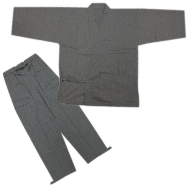 作務衣 さむえ メンズ 男性 グレー L 綿 無地 部屋着 簡単 男物 紳士用