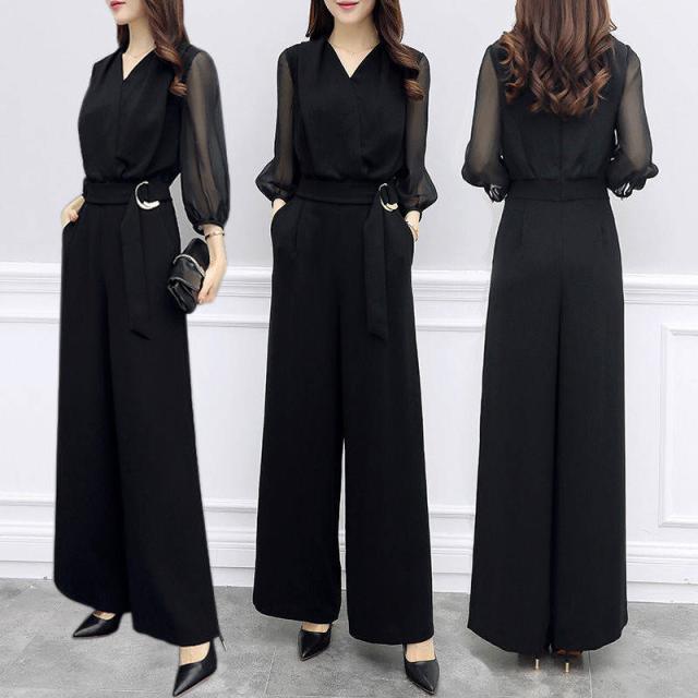 パンツドレス 結婚式 ドレス レディース オールインワン パンツ パンツスーツ フォーマル 体型カバー 大きいサイズ ボリューム袖 ウエスト紐 パーティー 披露宴 二次会 20代 30代 40代 50代 服 シースルー 服装 S-3XL