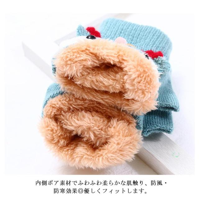 指切り ミントタイプ 手袋 キッズ カバー付き 送料無料 もこもこ ボア ニット手ぶくろ トナカイ 女の子 男の子 防寒 保温 可愛い