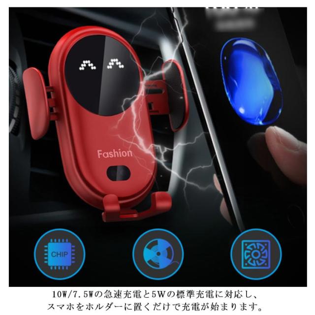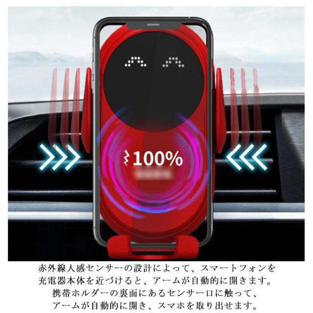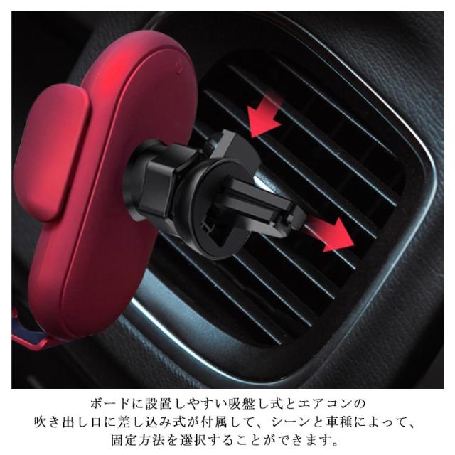 スマホホルダー ワイヤレス充電器 Qi充電対応 車載用 車載ホルダー 車載 急速 Qi 充電器 送風口 スマホスタンド 急速 充電 360度回転 充電ホルダー 過充電保護 車載 スマホホルダー カーチャージャー タッチセンサー