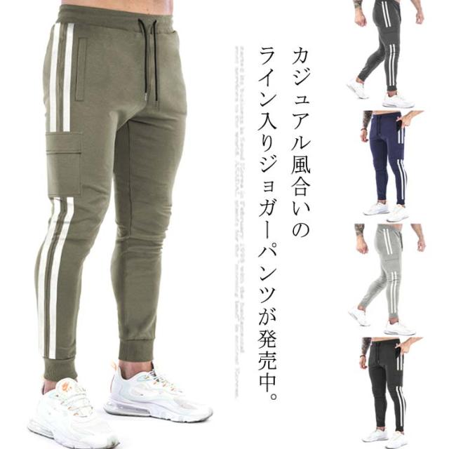 ジョガーパンツ スウェットパンツ ライン入り スポーツパンツ 無地 トレーニング アウトドア スキニー スエットパンツ テーパードパンツ 薄手 スリム ストレッチ 伸縮性 ウェストゴム リラックス ズボン ボトムス ラインパンツ コットン混 ラフ カジュアル 送料無料