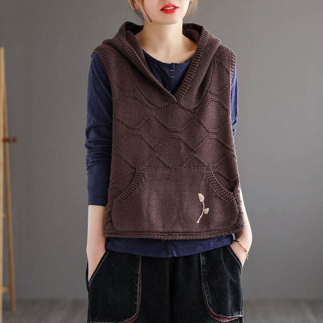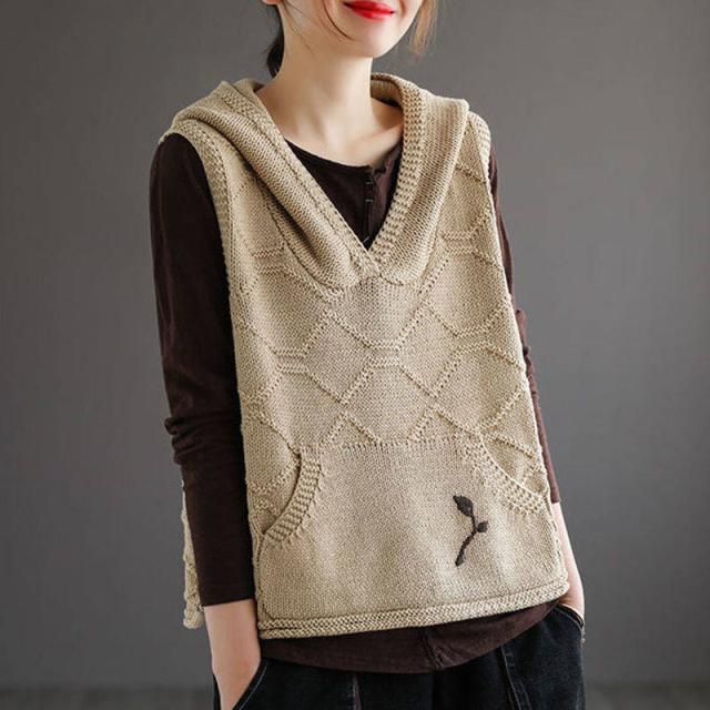 フード付きベスト レディース?春 秋冬 ニットベスト 刺繍ベスト ポケット付きベスト パーカーベスト フード付きベスト ゆったり 着痩せ カジュアル シンプル おしゃれ インナーウエア 送料無料