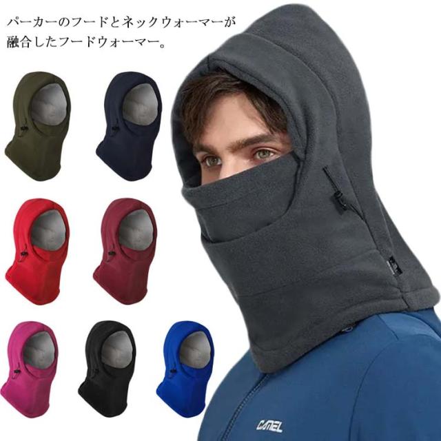 【送料無料】フードウォーマー 裏ボア フリース メンズ レディース 裏起毛 モコモコ 防寒 防風 秋冬 フェイスカバー スノーボードフードウォーマー 後付けフード スキー ウィンタースポーツ 厚手 無地 シンプル