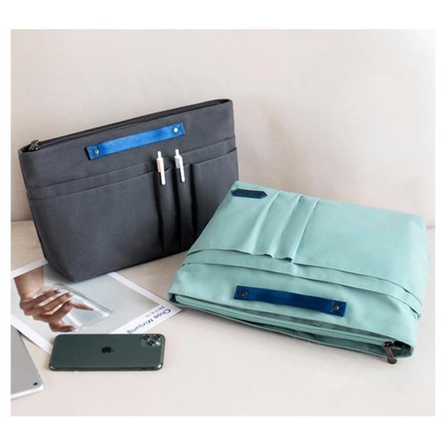 | 散らかる小物をまとめて収納できバッグインバッグです! お財布・携帯などの必需品から手帳やペン、化粧品までしっかり収納。 たくさんのポケットで、いろいろなものを種類別に収納することも可能。 | |