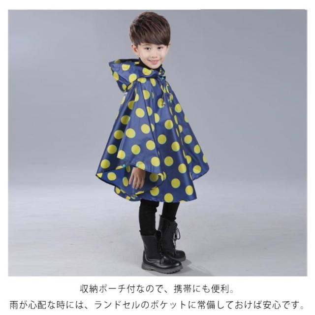 | 【 豊富なバリエーション 】選べるカラー・サイズバリエーションでお子様のお気に入りが見つかります。雨の日が待ち遠しくなりますよ。 【 おしゃれでかわいいデザイン 】ポップでおしゃれなデザインで男の子、女の子でもオシャレに着こなせます。 【 脱着簡単でラクラク 】スナップボタン付きのポンチョタイプで、お子様でも着脱しやすい作りとなっています。急な雨でもサッと羽織れます。 【 収納簡単 】収納ポーチ付なので、携帯にも便利。雨が心配な時には、ランドセルのポケットに常備しておけば安心です。 | |