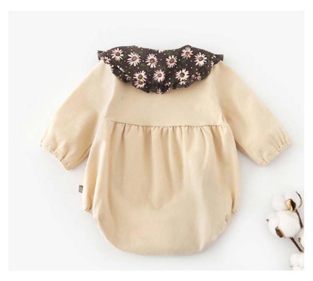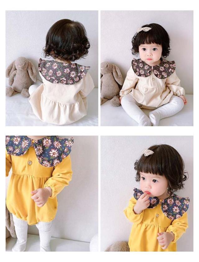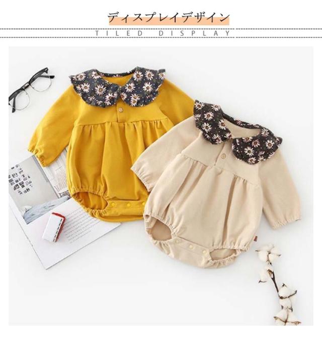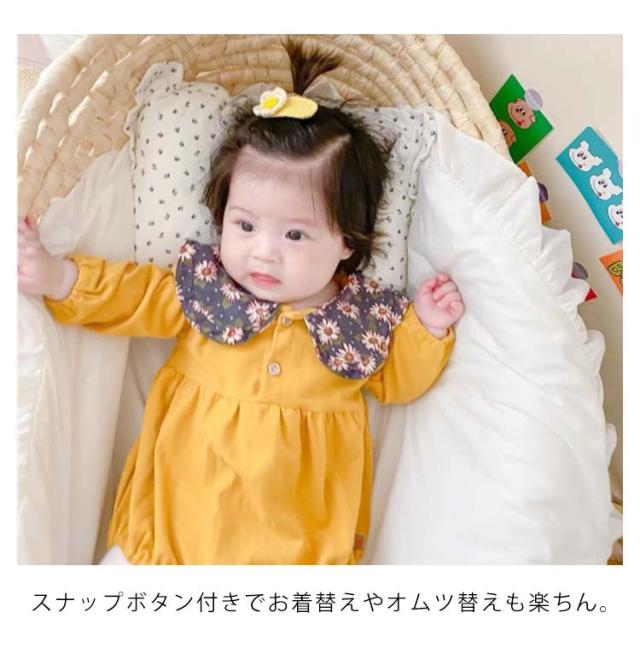 | 花柄の襟が可愛らしい! お出かけにピッタリ、長袖ロンパースです♪ 流行のゆったりめのシルエットでお子様をより可愛く! 薄くもなく厚手過ぎず丁度いい。 寒いときはレッグウォーマーで温度調節でき長く使えます。 スナップボタン付きでお着替えやオムツ替えも楽ちん。 | |