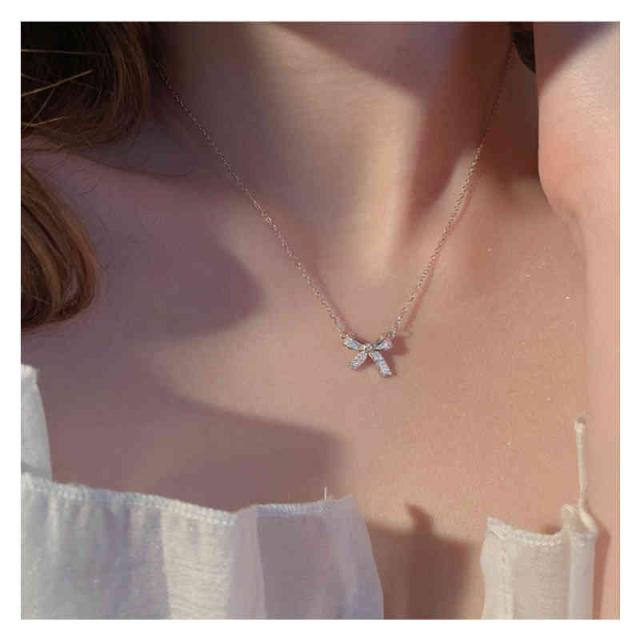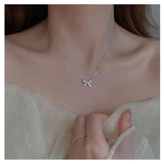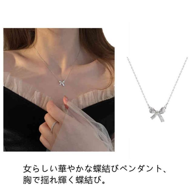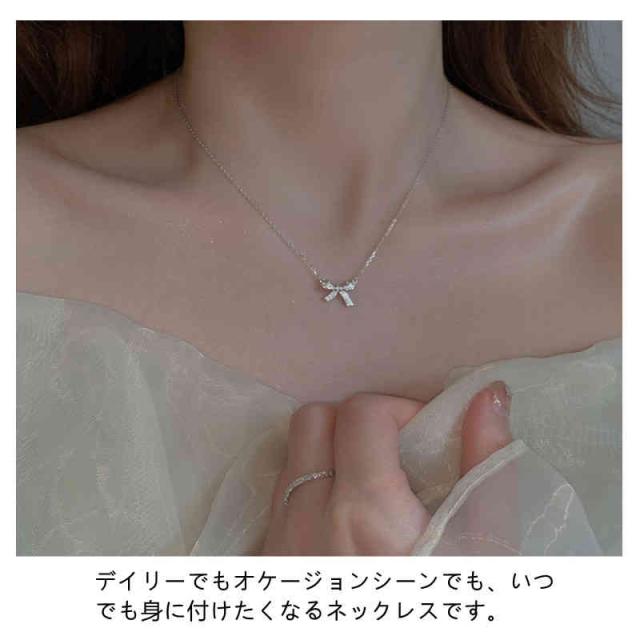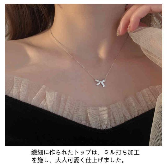 ネックレス レディース 人気 リボン ペンダント 鎖骨チェーン アクセサリー プレゼント 上品 大人 かわいい
