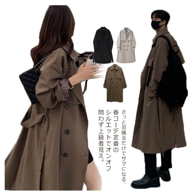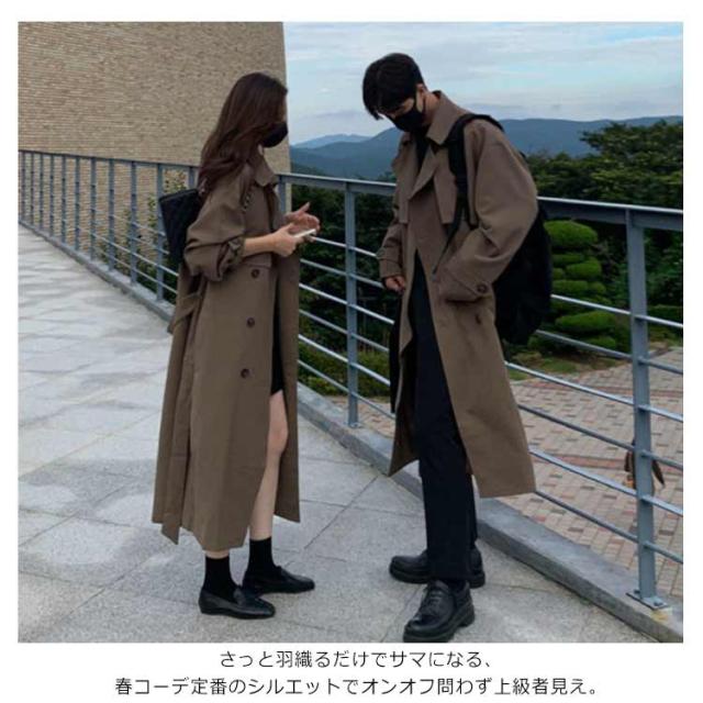 【送料無料】スプリングコート トレンチコート ロングコート 薄手 コート レディース メンズ ゆったり 春 秋 冬 韓国風 裏地付き カジュアル ストリート 大きいサイズ オーバーサイズ ユニセックス ペア