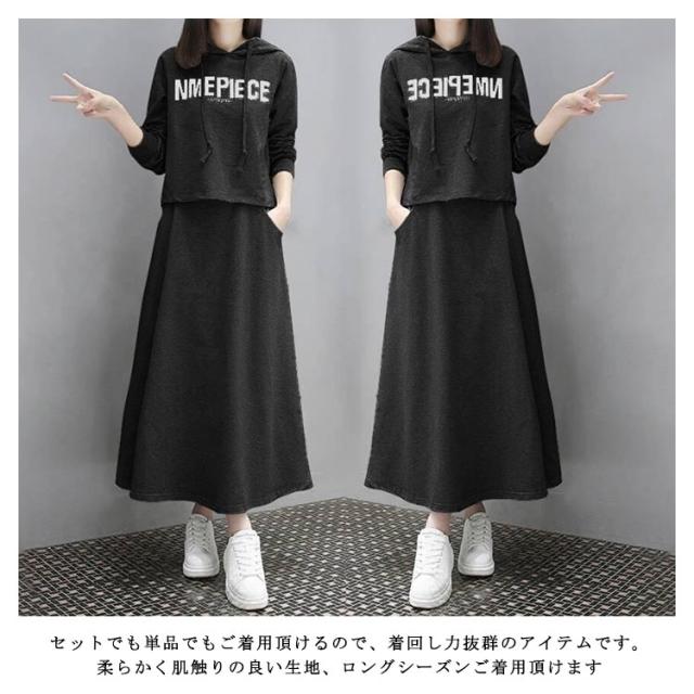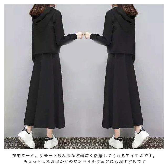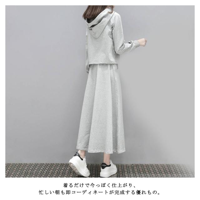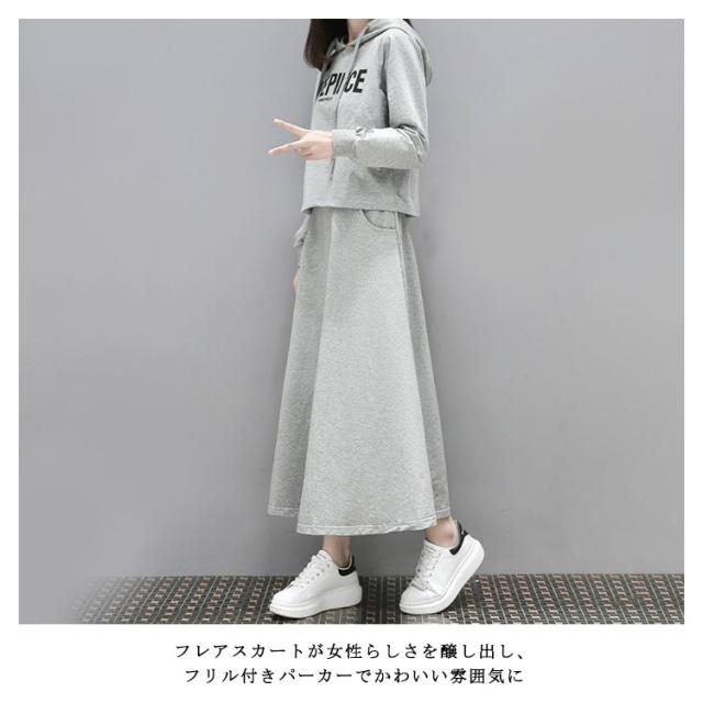 春パーカー セットアップ レディース スウェット 上下セット パーカー スカート フレアスカート フード付き 部屋着 ルームウェア 春服 夏服 韓国 ファッション カジュアル ストレッチ きれいめ ポケット付き S M L XL 2XL