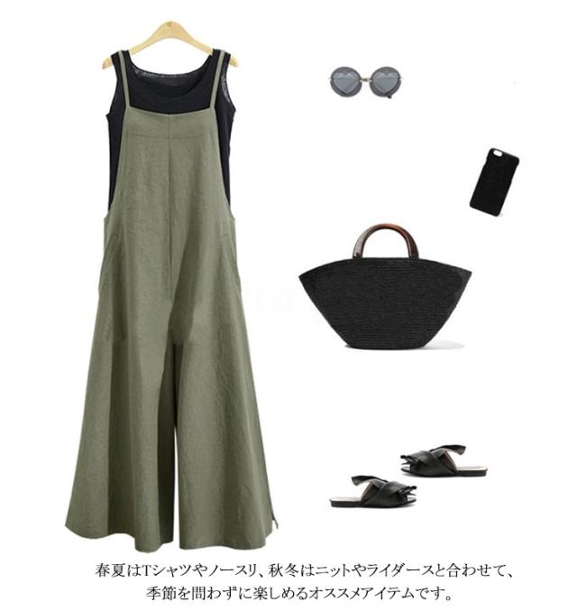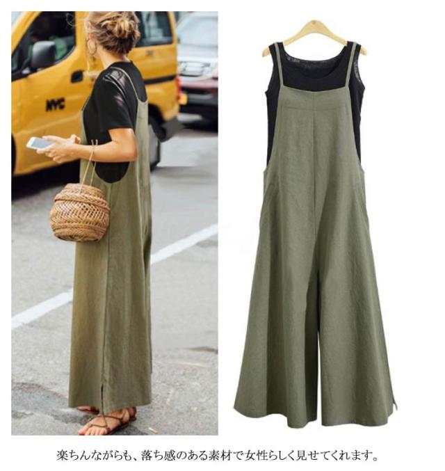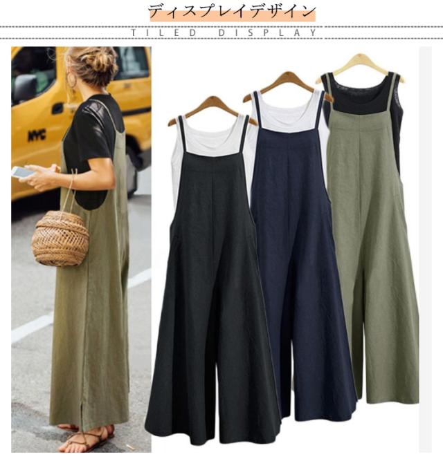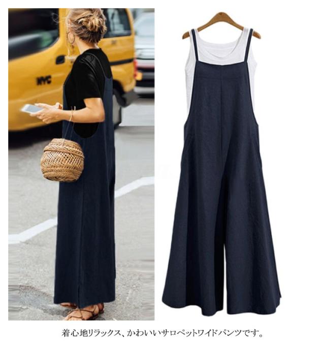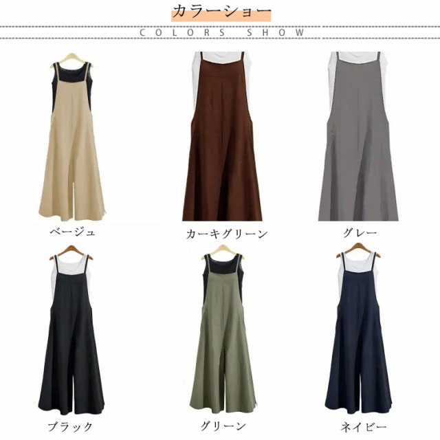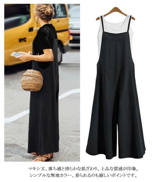全6色×8サイズ!オールインワン レディース サロペットパンツ サロペット ワイドパンツ ロングパンツ かわいい おしゃれ 普段着 通勤 大きいサイズ カジュアル 体型カバー 綿 送料無料
