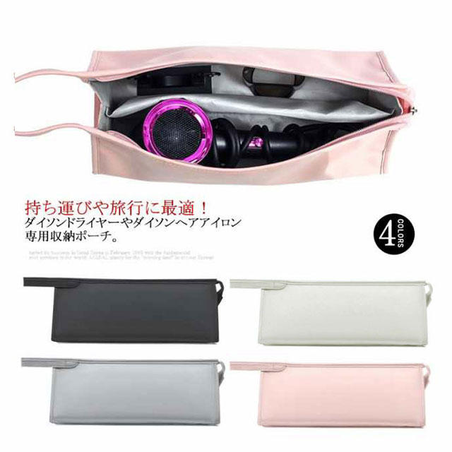 | 持ち運びや旅行に最適!ダイソンドライヤーやダイソンヘアアイロン専用収納ポーチ。 仕切り用のポケットが備えられているので、ヘアアイロンやスタンドなどを分けて収納することができるのもポイントとなっています。 裏側はソフトな起毛生地で、ドライヤーを衝撃からしっかり守ります。 持ち手も付属しているので、どこでもスマートに持ち運べます。 表面は水れが浸透しにくいPU防水素材ため、お手入れも簡単です。 汚れてしまった場合は水で簡単にお手入れできるです。 | |