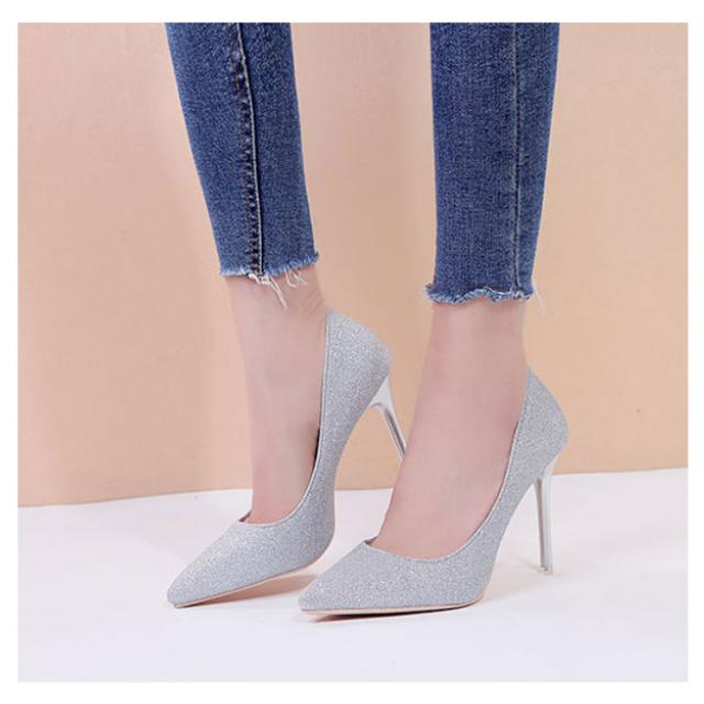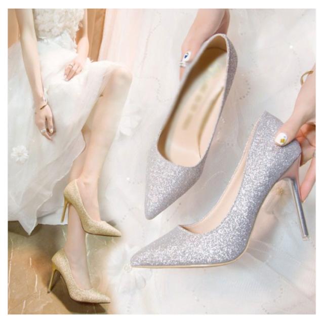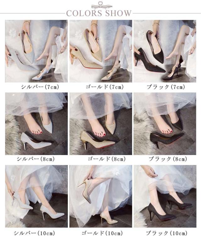 パンプス レディース キラキラ ハイヒール 7cm/8cm/10cm 結婚式 ラメグリッター パンプス 歩きやすい 痛くない ポインテッドトゥ 美脚 小さいサイズ 春夏 秋 二次会 シューズ 靴 シルバー ゴールド ブラック 黒 パンプス