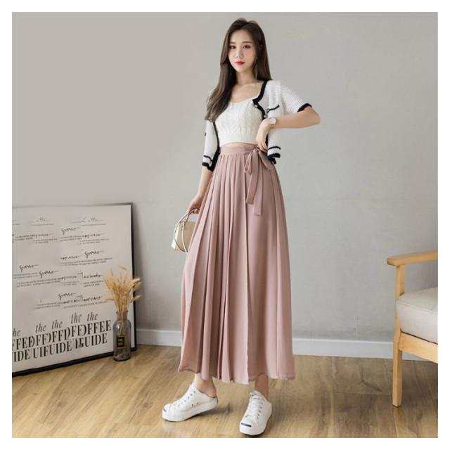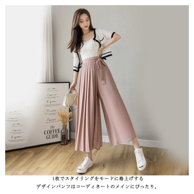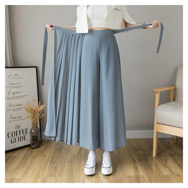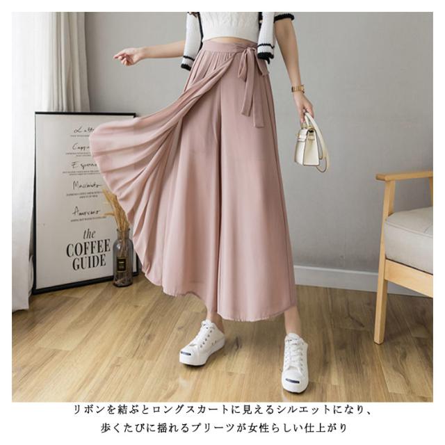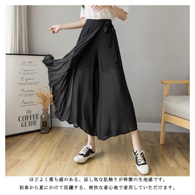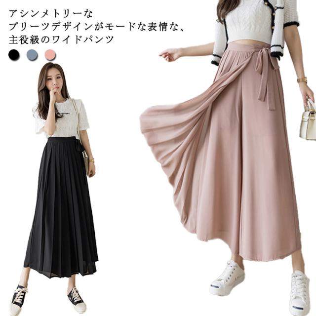 【送料無料】アシンメトリー プリーツパンツ ワイドパンツ スカートパンツ 落ち感 シフォン 薄手 春 夏 秋 レディース プリーツ パンツ ウエストゴム ハイウエスト プリーツスカート 無地 20代 30代 40代 50代