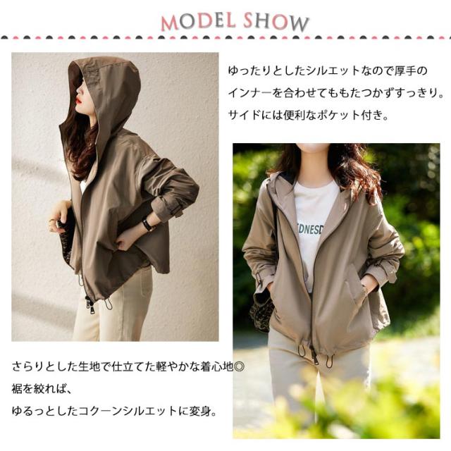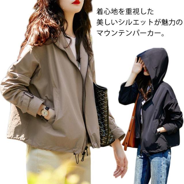 マウンテンパーカー レディース アウター 長袖 ジャケット ライトアウター フード付き ショート丈 ウィンドブレーカー 春コート 春アウター スプリングコート 上着 ブルゾン 軽い 羽織り ゆったり 大きいサイズ アウトドア おしゃれ カジュアル 通勤 春 秋 冬 送料無料
