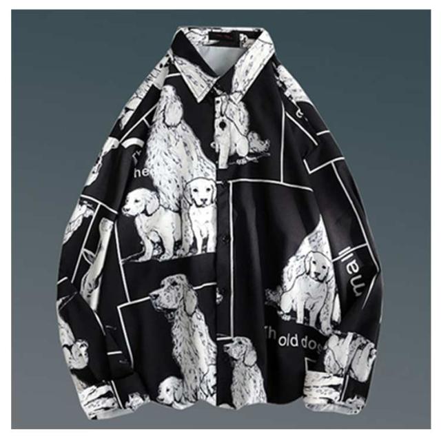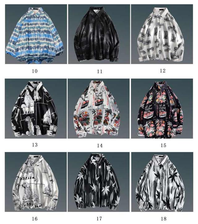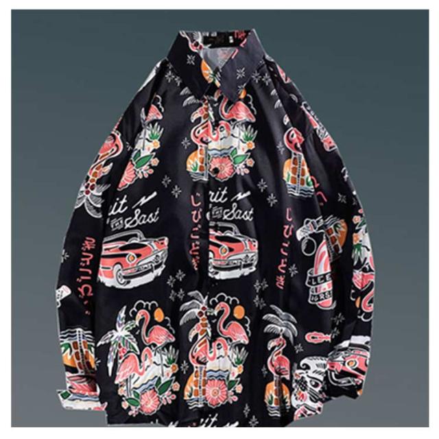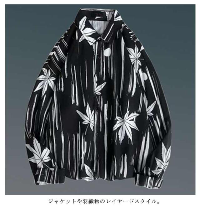 メンズ シャツ トップス 長袖 カジュアルシャツ 花柄シャツ 長袖シャツ ルーズシャツ ワイシャツ Yシャツ 前ボタン ブラック ホワイト レトロ 父の日 プレゼント 20代 30代 40代 50代