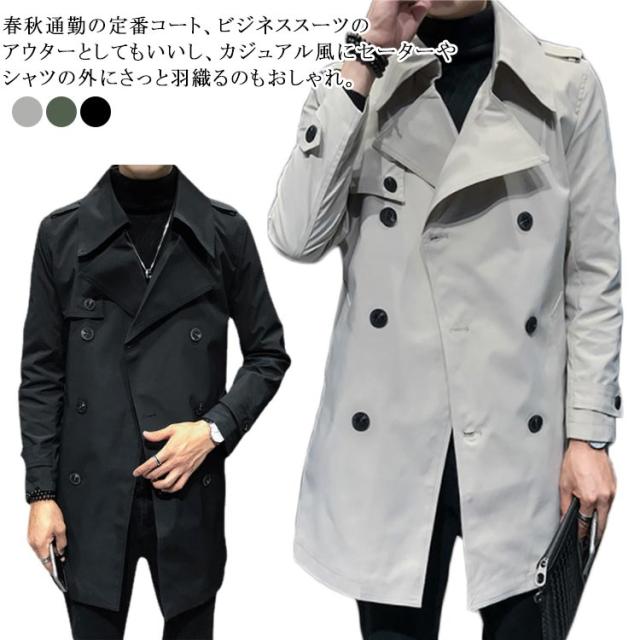 定番 トレンチコート メンズ 長袖 春アウター 秋春 スプリングコート ビジネス 薄手 防風 大きいサイズ 通勤 ビジネス ダブルボタン ミディアム丈 ショート 細身 トレンチ ミリタリー ジャケット 送料無料