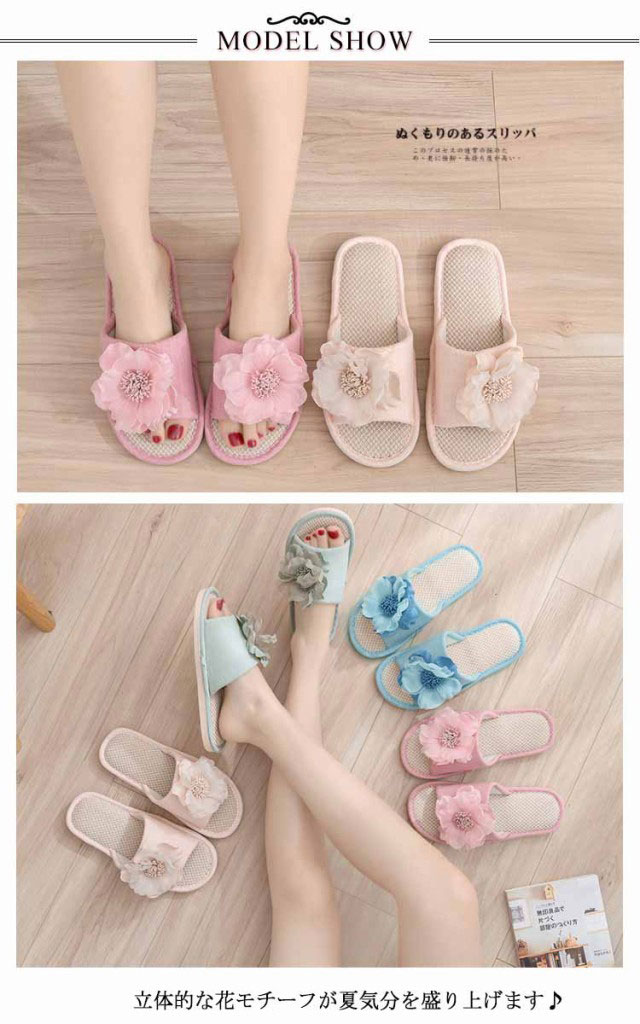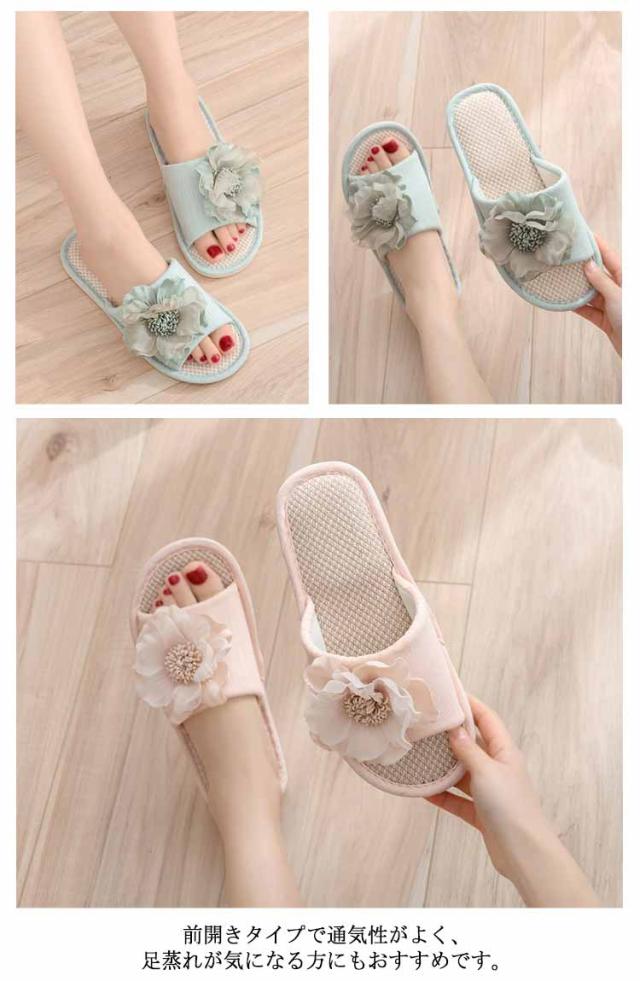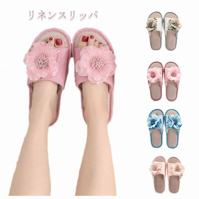 スリッパ レディース リネンスリッパ 麻 ルームシューズ サンダル 花 モチーフ 室内履き 麻スリッパ リネンサンダル 涼しい 蒸れない 春 夏 ベランダ サンダル おしゃれ 洗える 軽量 可愛い ナチュラル 来客用 自宅用 送料無料