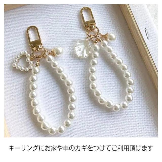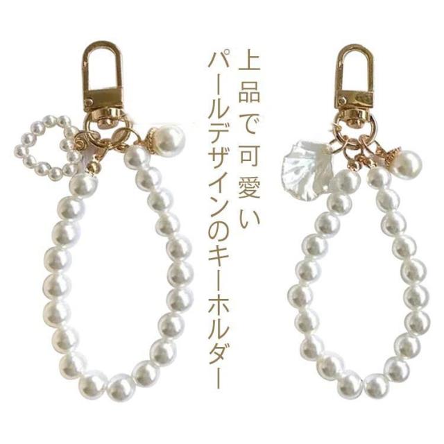 キーホルダー パール シェル 2個セット 上品 かわいい バッグチャーム コンパクト キーリング 車の鍵 おしゃれ ギフト プレゼント アクセサリー カラビナ付き レディース 大人女子 女性 キーチェーン 送料無料