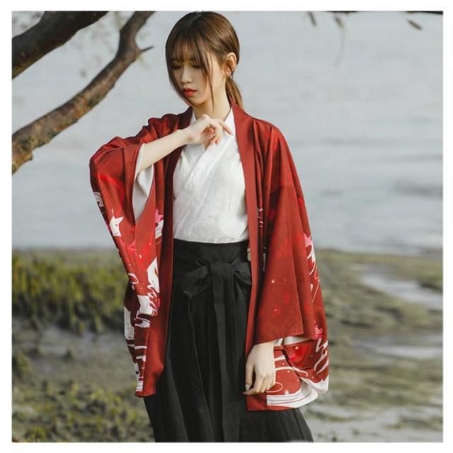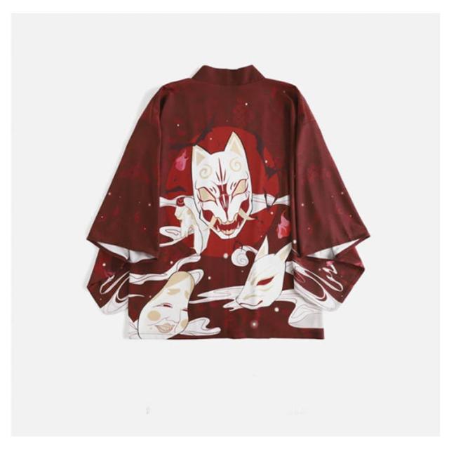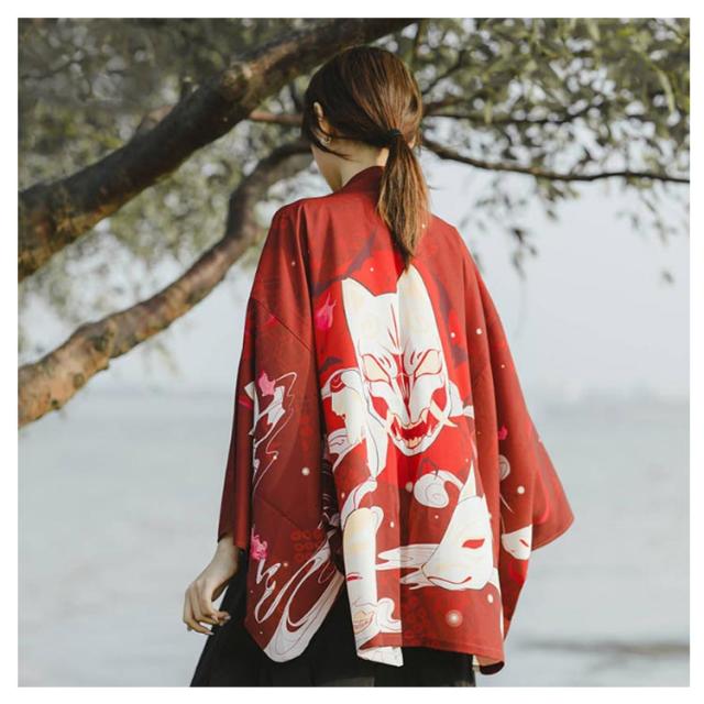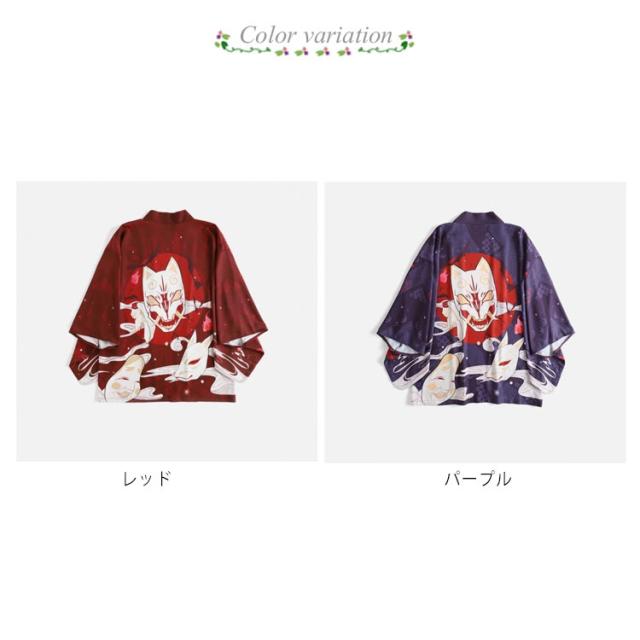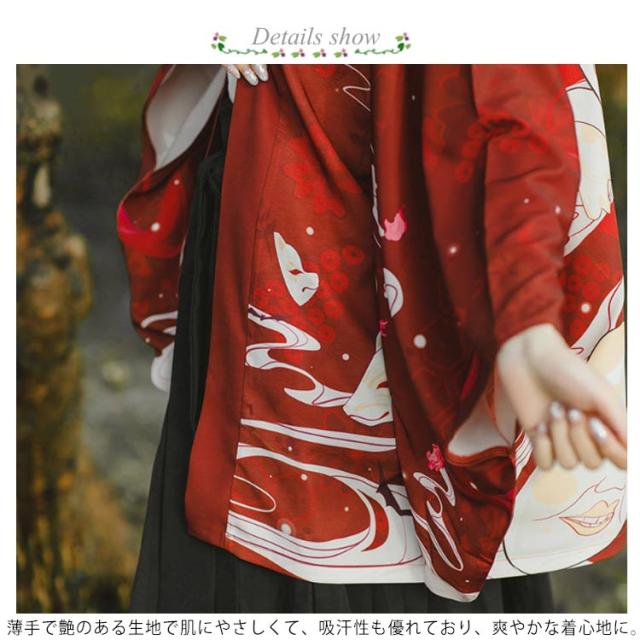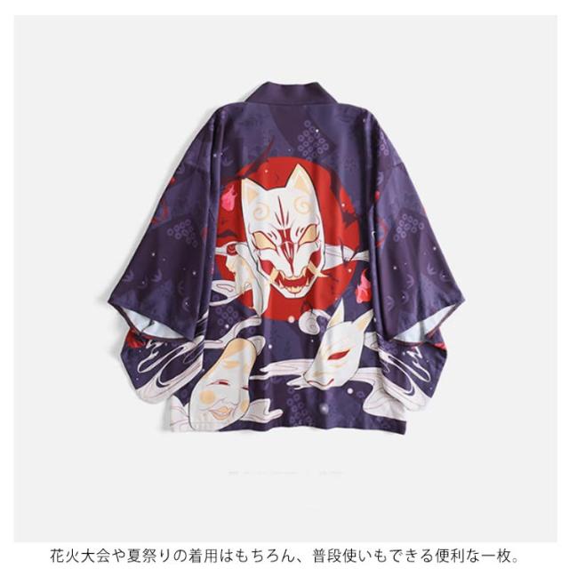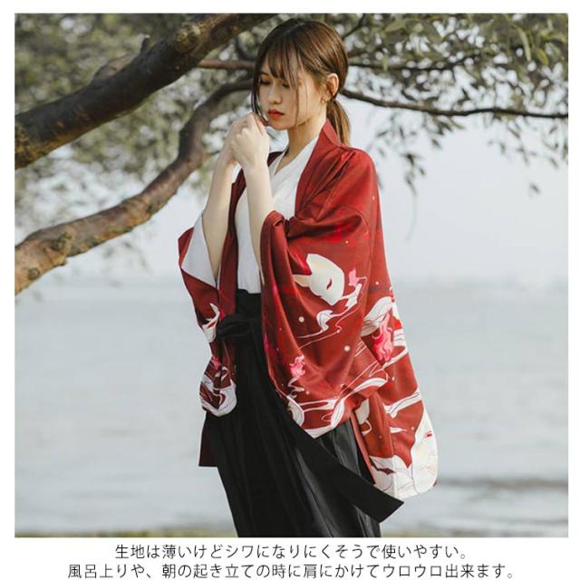 和柄 羽織 レディース カーディガン 和風着物 コスプレ 衣装 UVカット 七分袖 ゆったり トップス キツネ 着物 浴衣 和風 法被 甚平 ダンス衣装 コスプレ 花火大会 夏祭り 女性用 男女兼用 薄手 春夏秋 きれいめ おしゃれ 送料無料