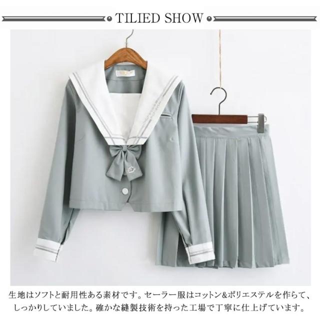 | 【素材】コットン&ポリエステル。 生地はソフトと耐用性ある素材です。セーラー服はコットン&ポリエステルを作らて、しっかりしていました。 確かな縫製技術を持った工場で丁寧に仕上げています。 【セット内容】トップス+スカート+蝶結び;スッキリとまとまった清楚な感じのセーラー服です。 【デザイン】定番なセーラー服です。 清純な本格制服で女子高生に演出します。 セーラー服長袖は清潔感を持ちます。ミニ丈とAラインの組み合せは美脚効果もあります。 【見た目】襟元に刺繍をが入った、特別な味があります。気軽に学生時代にタイムスリップして、青春時代を味わえます。 【ご用途】撮影やコスプレ、仮装パーティーや普段着の場合でも似合いますよ。 | |