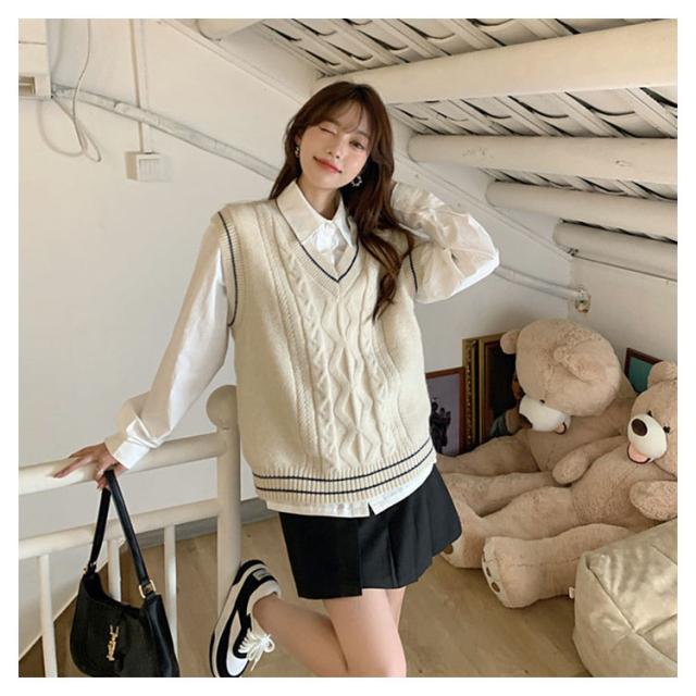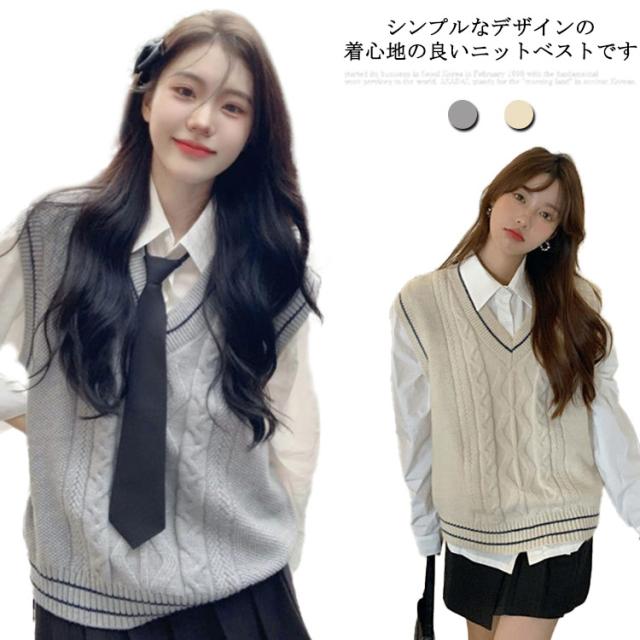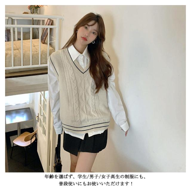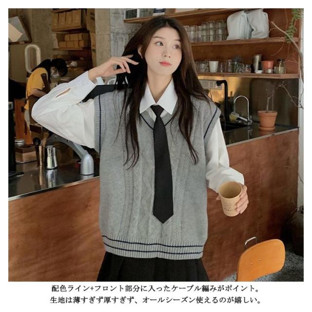 ライン入り ニットベスト Vネック スクールベスト 女子 学生 制服 ニット スクール セーター ノースリーブ 春 夏 秋 冬 JK 通学 高校生 中学生 シンプル 無地 ゆったり 学生服 男女兼用 レディース スクールニット 可愛い 送料無料