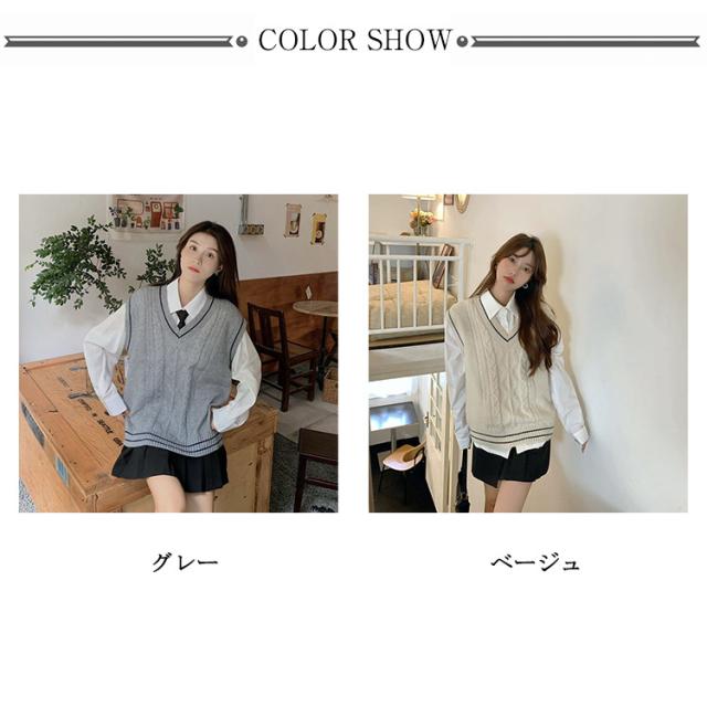 | シンプルなデザインの着心地の良いニットベストです。配色ライン+フロント部分に入ったケーブル編みがポイント。 生地は薄すぎず厚すぎず、オールシーズン使えるのが嬉しい。 インナーのブラウスの衿が綺麗に見えるように計算されたVネック深さです。 首元を綺麗に見せるVゾーンと、程よくゆとりを持たせたシルエットが清楚さを演出! 年齢を選ばず、学生/男子/女子高生の制服にも、普段使いにもお使いいただけます! | |
