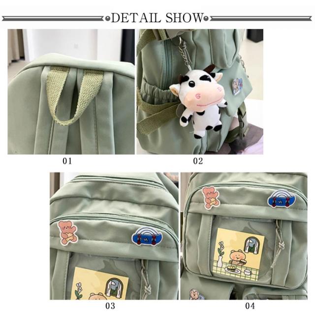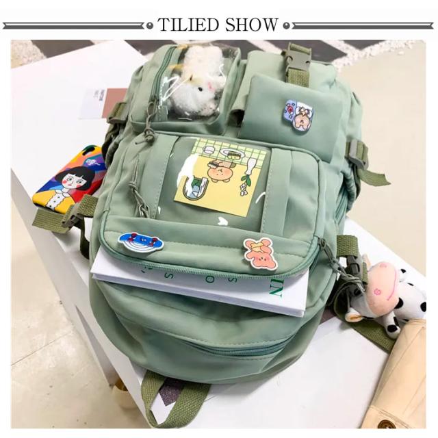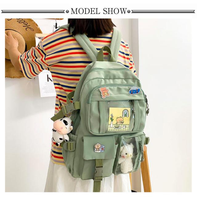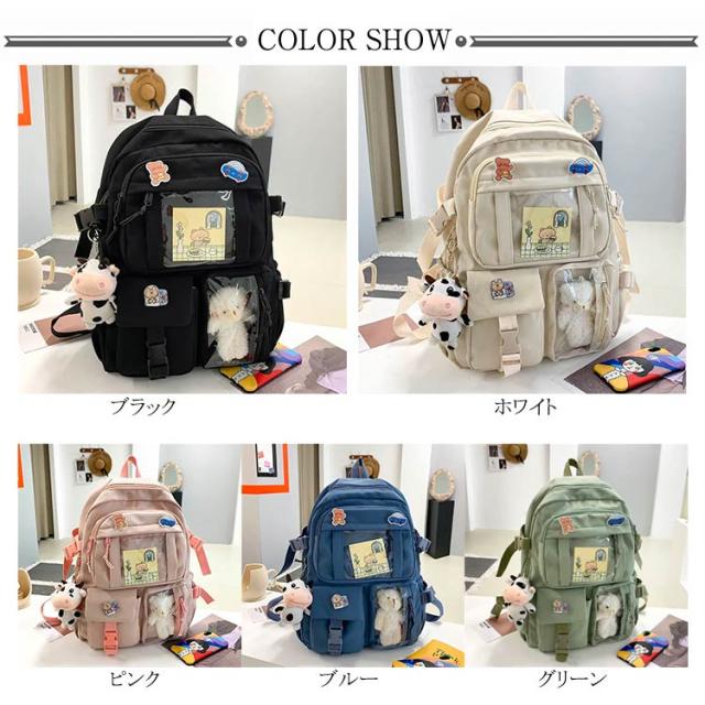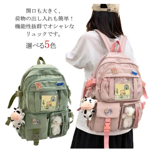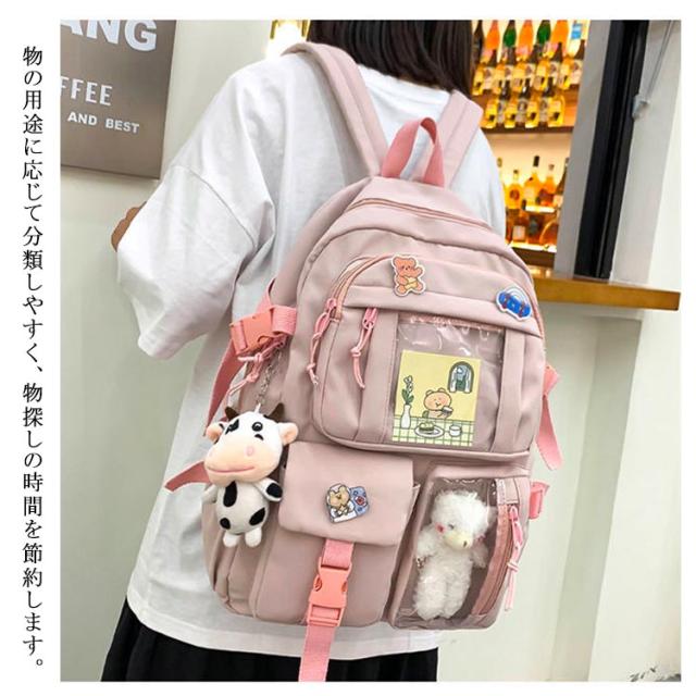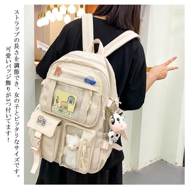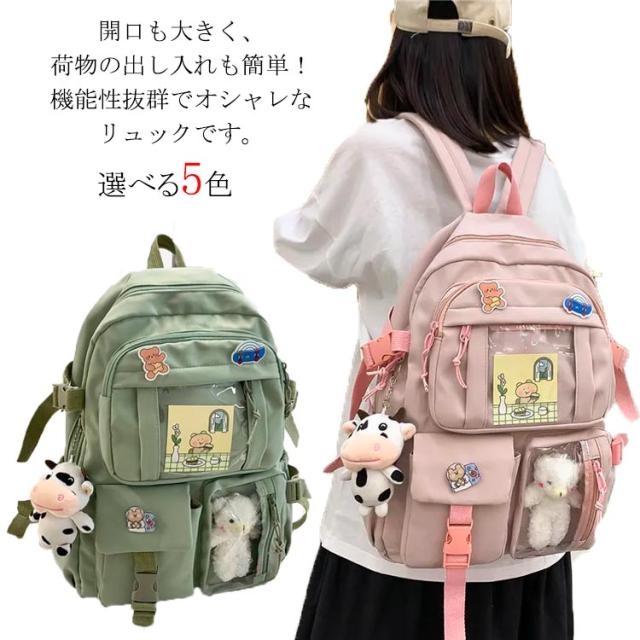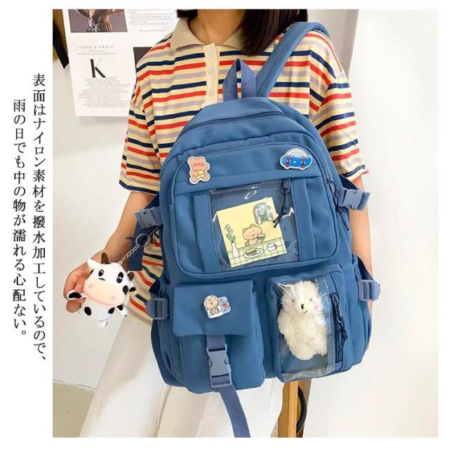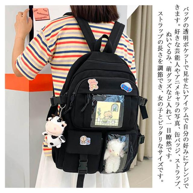 リュックサック リュック レディース 通学リュック バックパック 大学生 高校生 中学生 a4 大容量 痛バッグ 痛バ 透明 ビニール 透明ポケット 韓国 リュックサック 撥水加工 ナイロン 学生 通学 通勤 旅行 軽量 ガールズ 可愛い バッジ付き