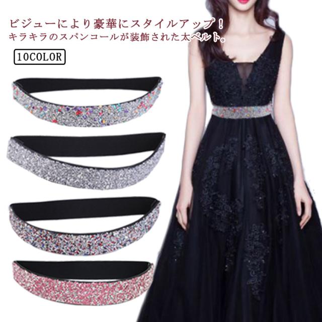 ビジューベルト ウエストマーク アクセサリー ベルト ラインストーン キラキラ 太ベルト レディース ハイウェスト ゴムベルト ドレスアップ おしゃれ 通勤 通学 デート 結婚式 二次会 謝恩会 パーティ クラブ ファション小物 送料無料