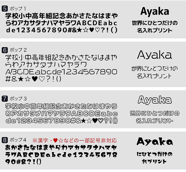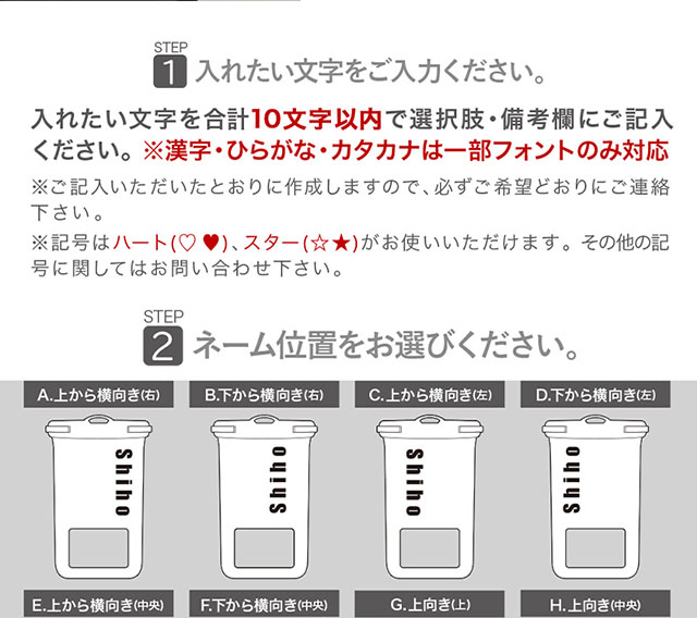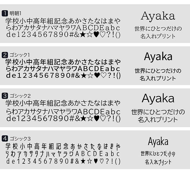 ・名入れなしをご選択いただいている状態で、ネーム位置、フォントタイプ、フォントカラーをご選択された場合は名入れなしでの発送となります。