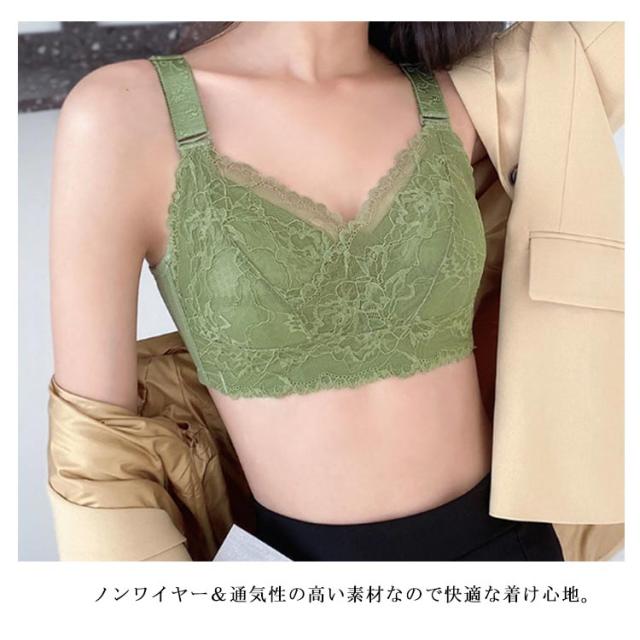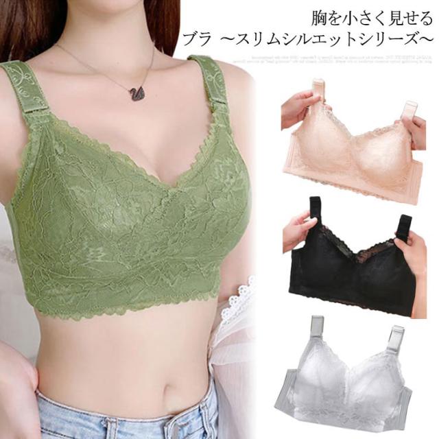 【送料無料】胸を小さく見せるブラ ブラジャー 小さく見せる 谷間を隠して 着?せ フルカップ ノンワイヤー レース 薄手カップ 痩せ見え ブラ 補正下着 85 90 95 100 E 脇高 胸元カバー 30代 40代 50代