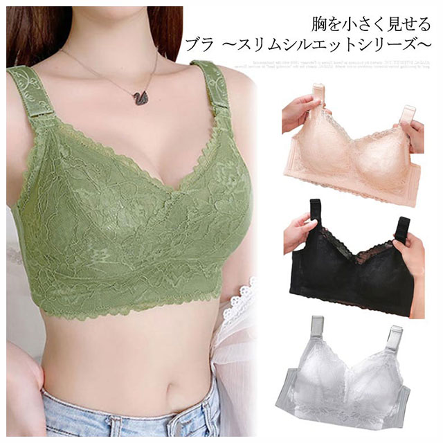 | 胸を小さく見せるブラ 〜スリムシルエットシリーズ〜 自然にボリュームを抑えつつ、きれいなシルエットに見せたい ノンワイヤー&通気性の高い素材なので快適な着け心地。 脇肉を逃さずがっちりホールドしてくれる脇高で脇の下、背中も段差なくすっきりきれいなシルエット! 太いストラップも目立ちにくくスタイリッシュに。 バストをコンパクトに見せるブラジャーを着用すると、上半身のシルエットをスッキリ見せることができます。 ボリュームバストさんへ贈る、スマートな着こなしを叶えてくれる小さく見えるブラジャー! | |