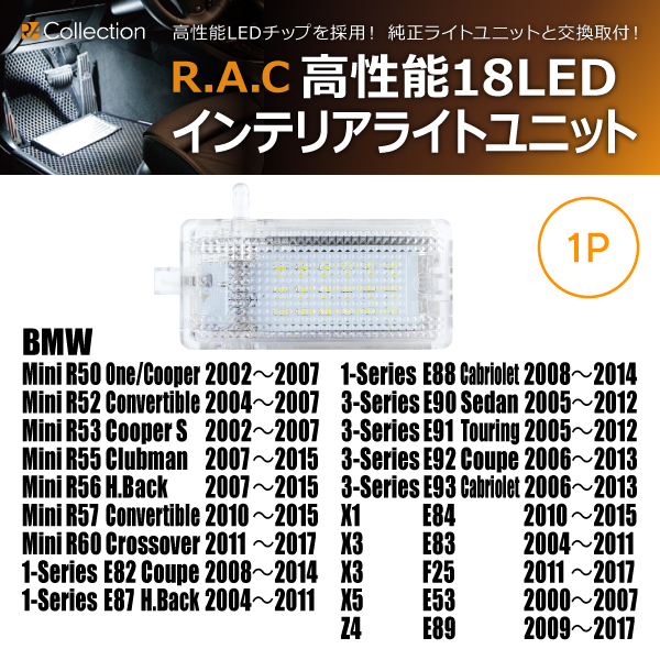 【在庫限】BMW ミニ R57 コンバーチブル 2010-2015 R.A.C LED インテリアライトユニット (商品コード:500072)